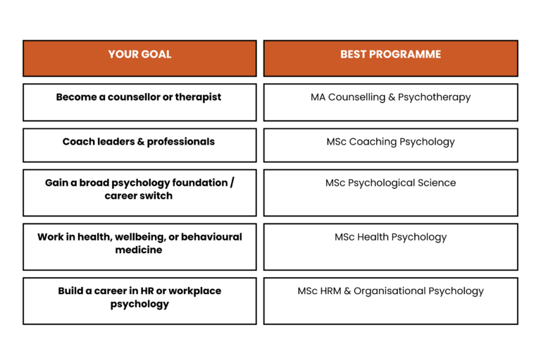 This is the most versatile programme, ideal for those exploring psychology as a new career direction.